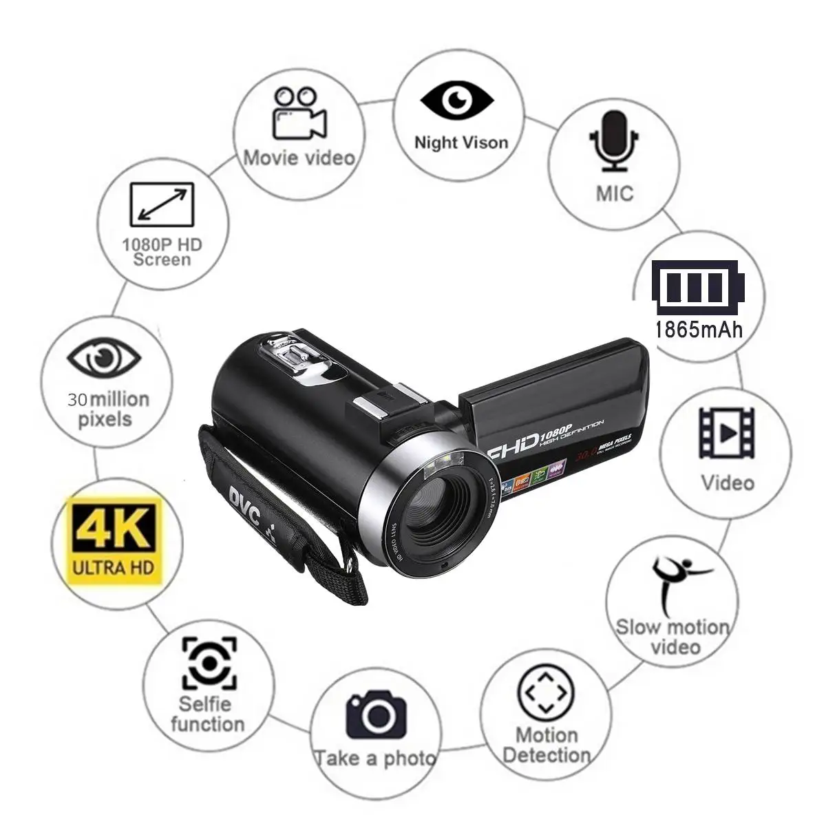 TOP Professional 30MP 4K HD Camcorder Video Camera Night Vision 3.0 Inch LCD Camera 18X digital zoom Ca